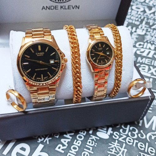 ست ساعت زنانه و مردانه برند کاسیو ساعت ها دارای روزشمار دو عدد دستبند کارتیر استیل و دو تا انگشتر