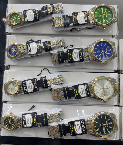 ساعت سیکو ۵ دو تقویم رنگ ثابت ضدآب ست زنانه و مردانه شب نما قفل فشاری دو طرفه