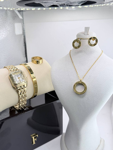 ساعت برند جریس ست کارتیه طرف لاو گردبند گوشواره دسبند و حلقه استیل درجه یک کیفیت استیل بالا