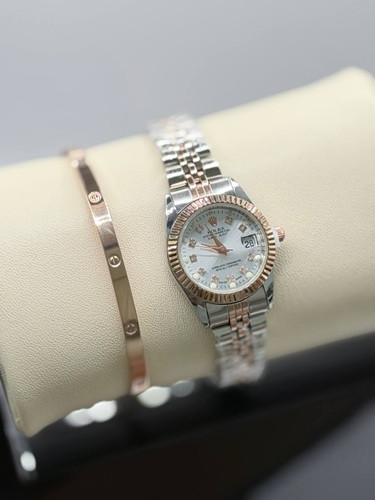 ساعت رولکس زنانه دورنگ رز گلی ودستبند کارتیه لاو رز گلد استیل باکیفیت