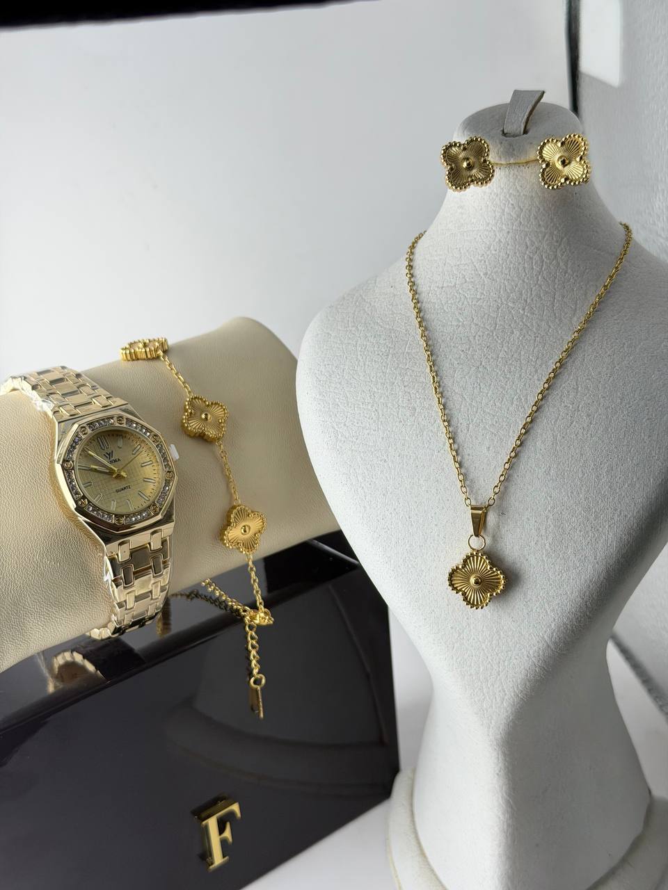 ست زنانه ساعت و نیمست خاص ونکلیف مشکی طلایی