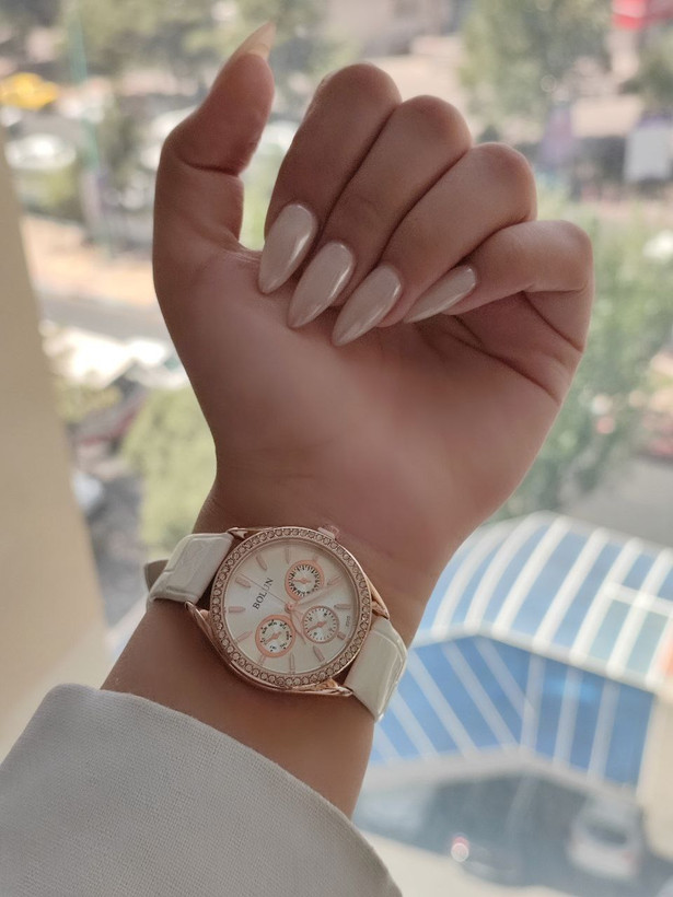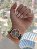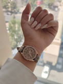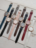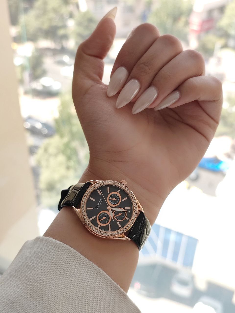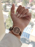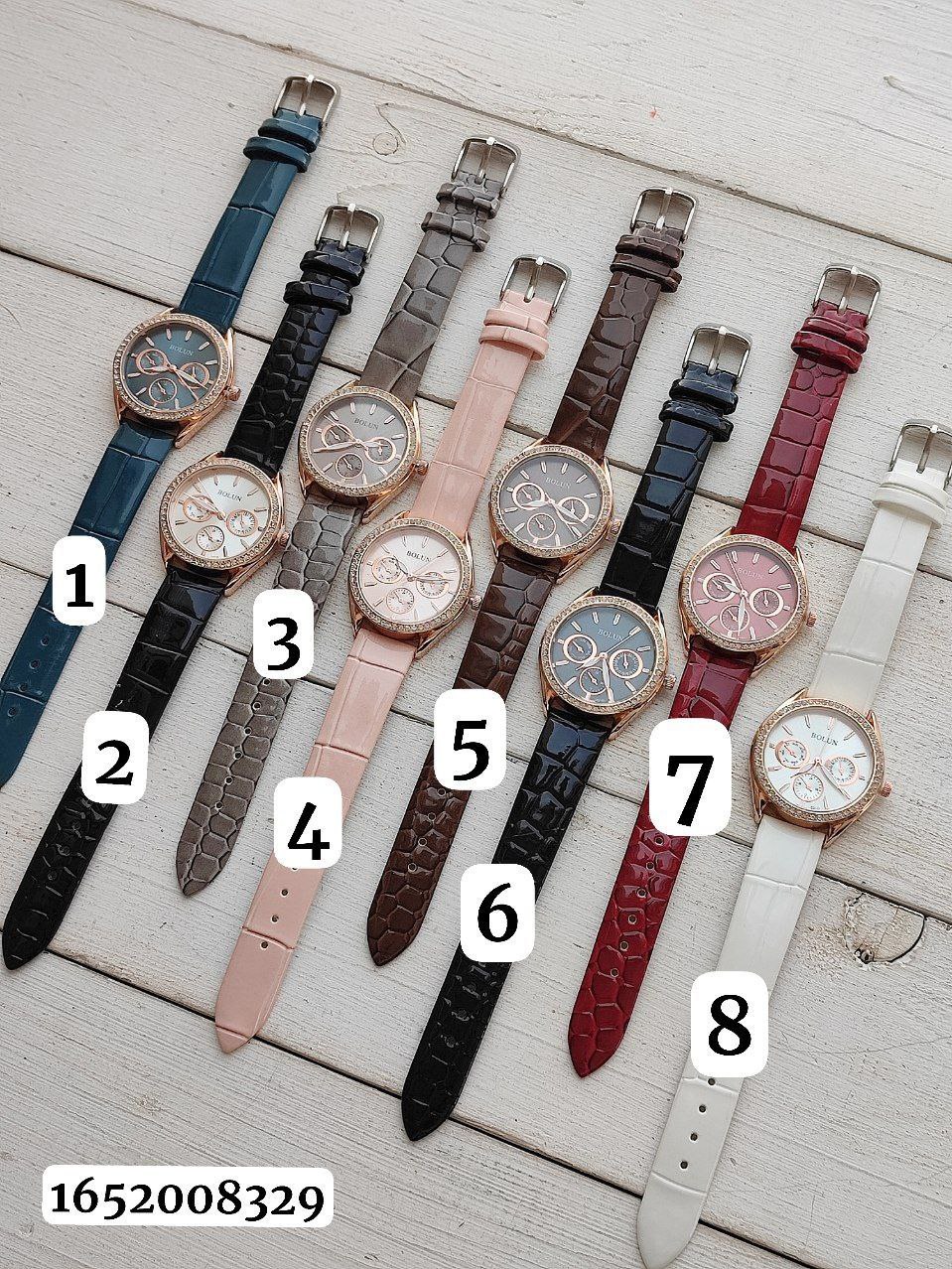 ساعت دخترانه چرمی مارک بلون 1652008329 بند چرم قفل سگکی دور قاب نگین موتور با کیفیت طرح سه موتوره رنگبندی متنوع همراه با جعبه شیک