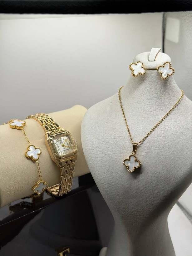 ساعت زنانه طلایی بند استیل به همراه نیمست ونکلیف خاص