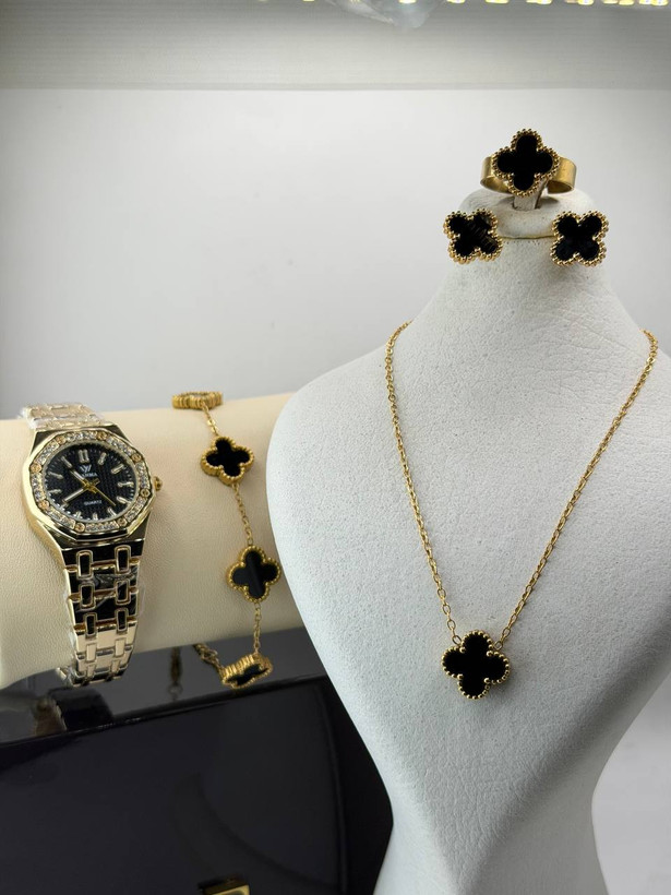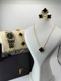 ست ساعت و نیمست زنانه ونکلیف مشکی طلایی