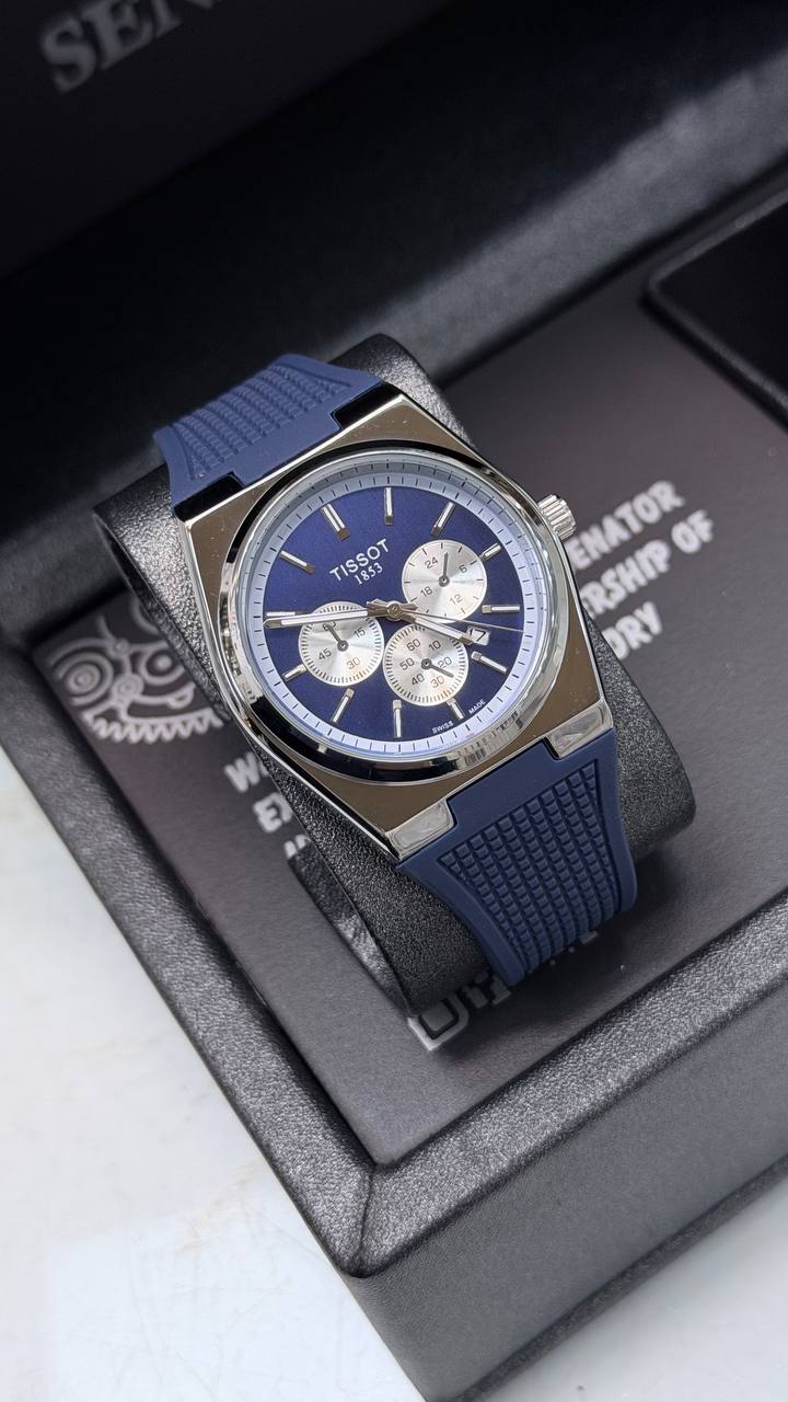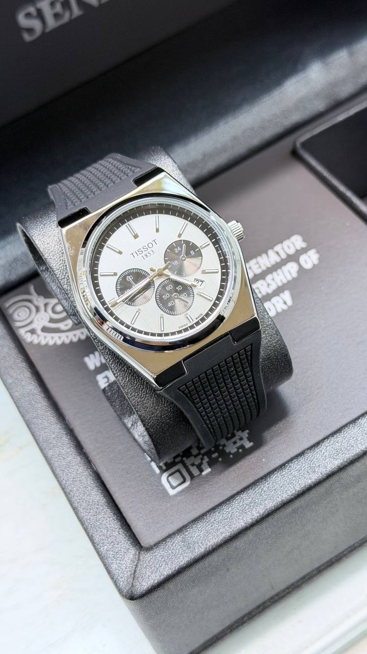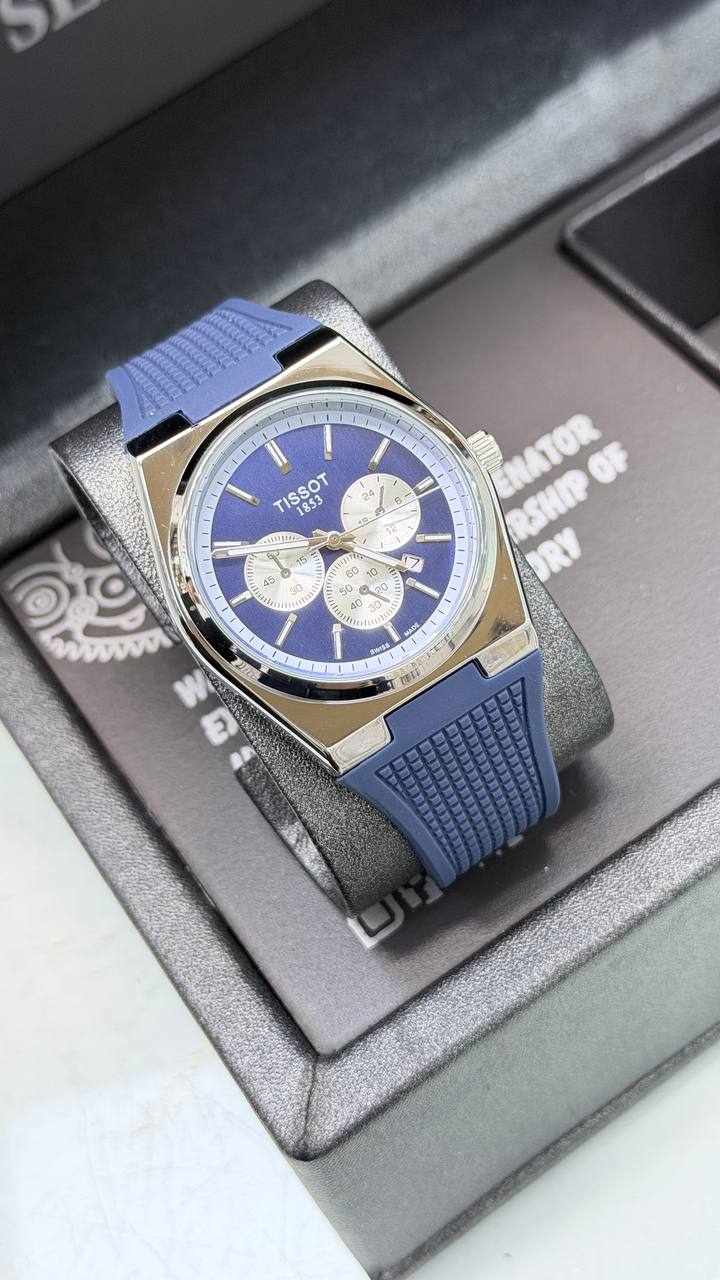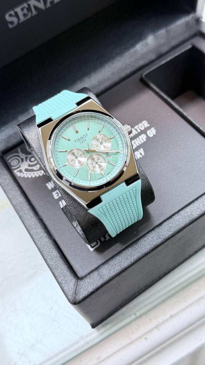 ساعت تیسوت prx بند رابر قاب استیل طرح کرنو تقویم دار موتور تایوان قفل سگکی
