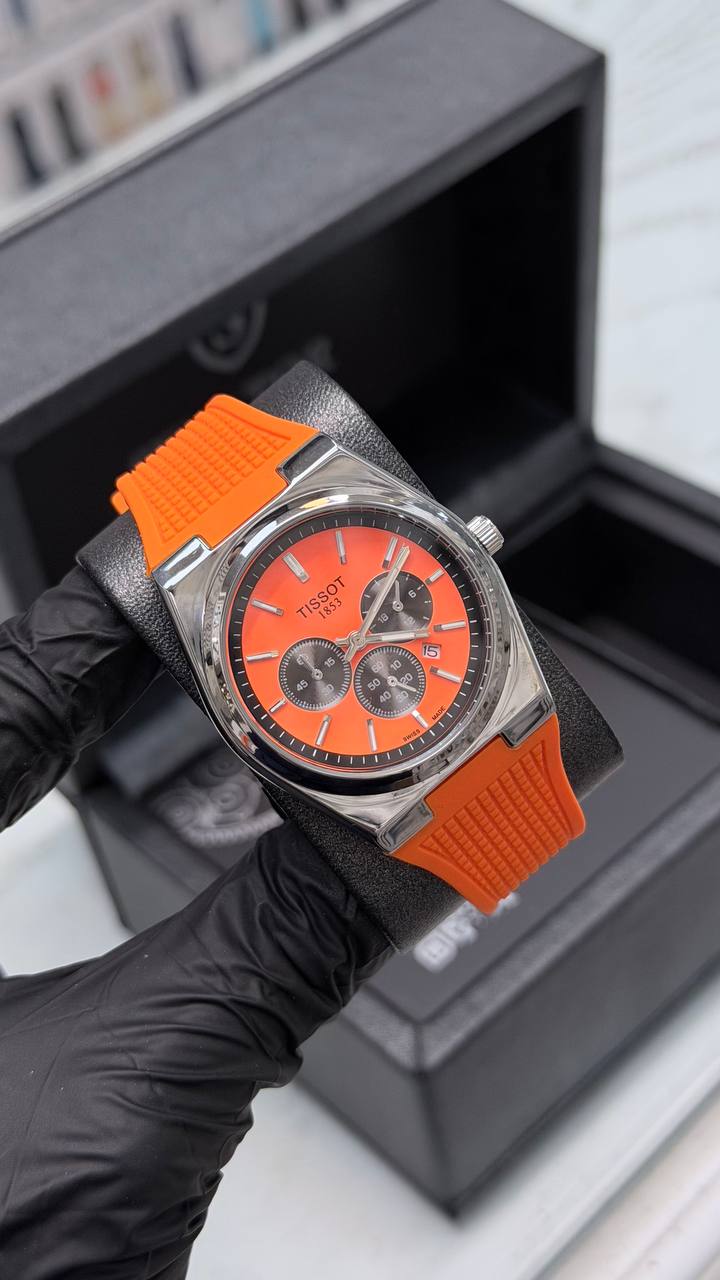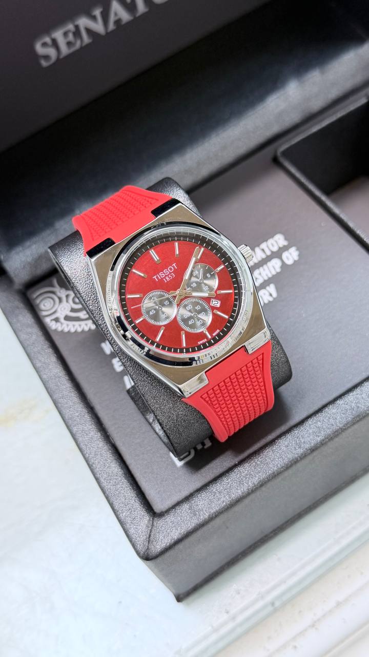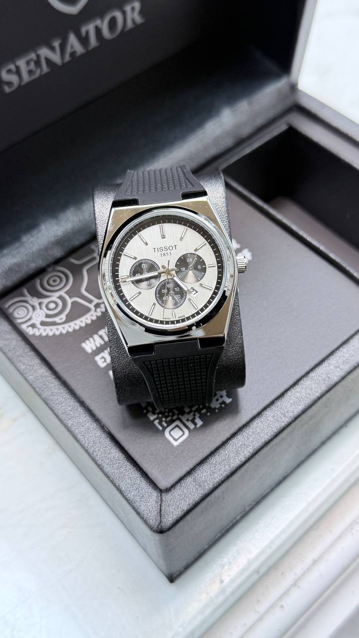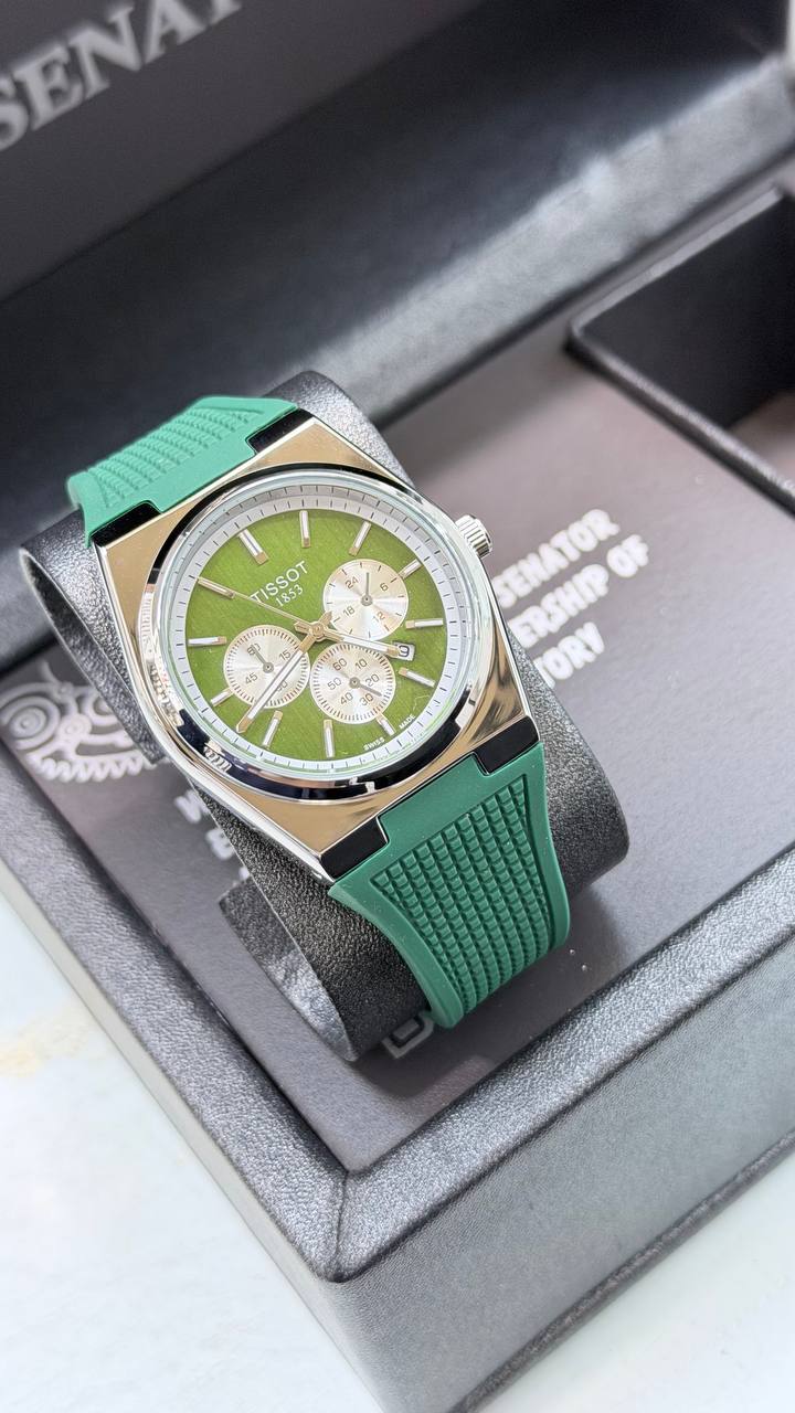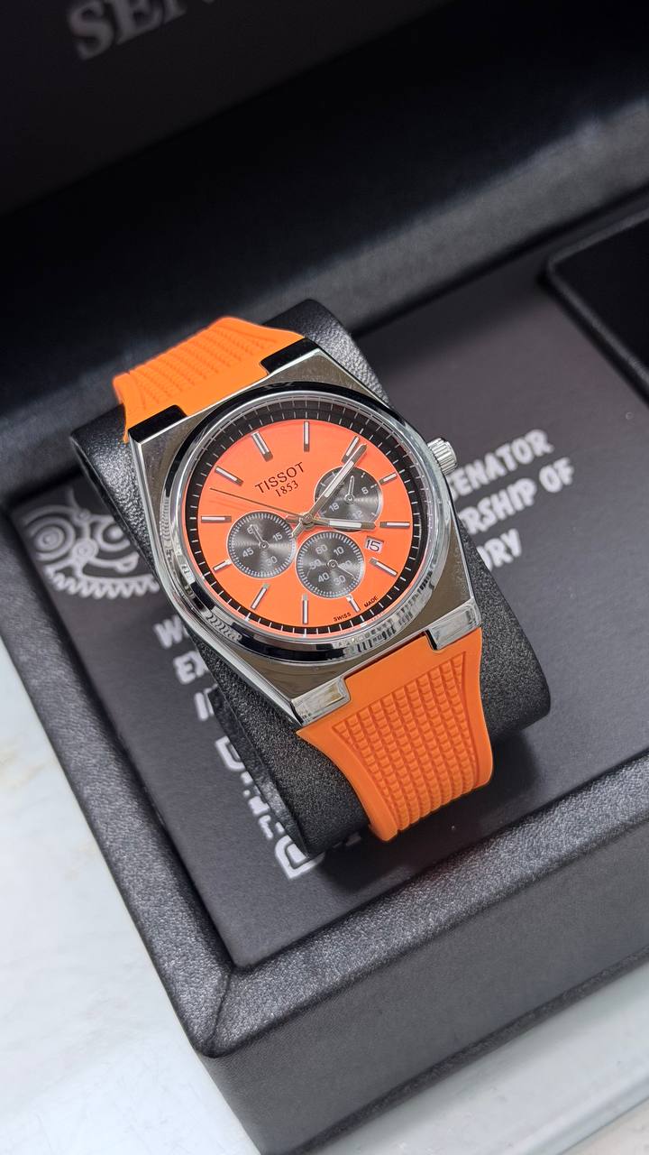 ساعت تیسوت prx بند رابر قاب استیل طرح کرنو تقویم دار موتور تایوان قفل سگکی