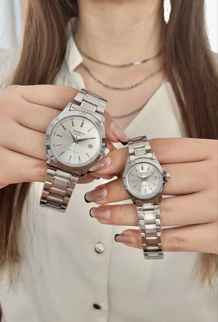 ست ساعت کاسیو قفل کلیپسی کیفیت سفارشی دارای روز شمار مقاوم دربرابر آب بند استیل موتور کوارتز رنگ سیلور خاص کلاسیک